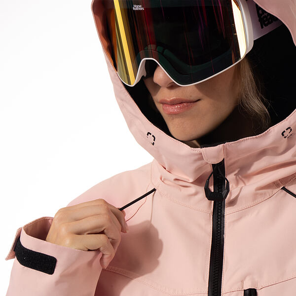 Technologie 2-way YKK zipu dodává bundě maximální funkčnost a mobilitu i v extrémních sněhových podmínkách, kdy je klíčové udržet ji bezpečně zapnutou.