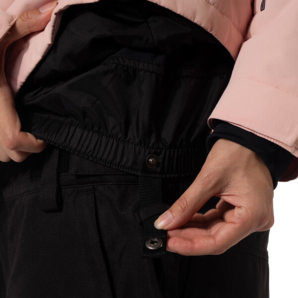 Poutka protisněžného pásu lze propojit s kalhotami a tak zabránit proniknutí chladu a sněhu pod bundu