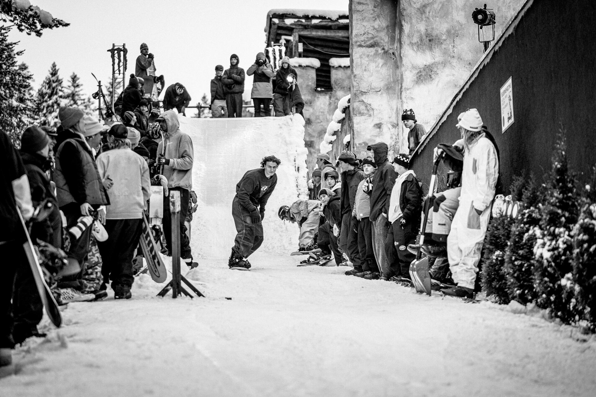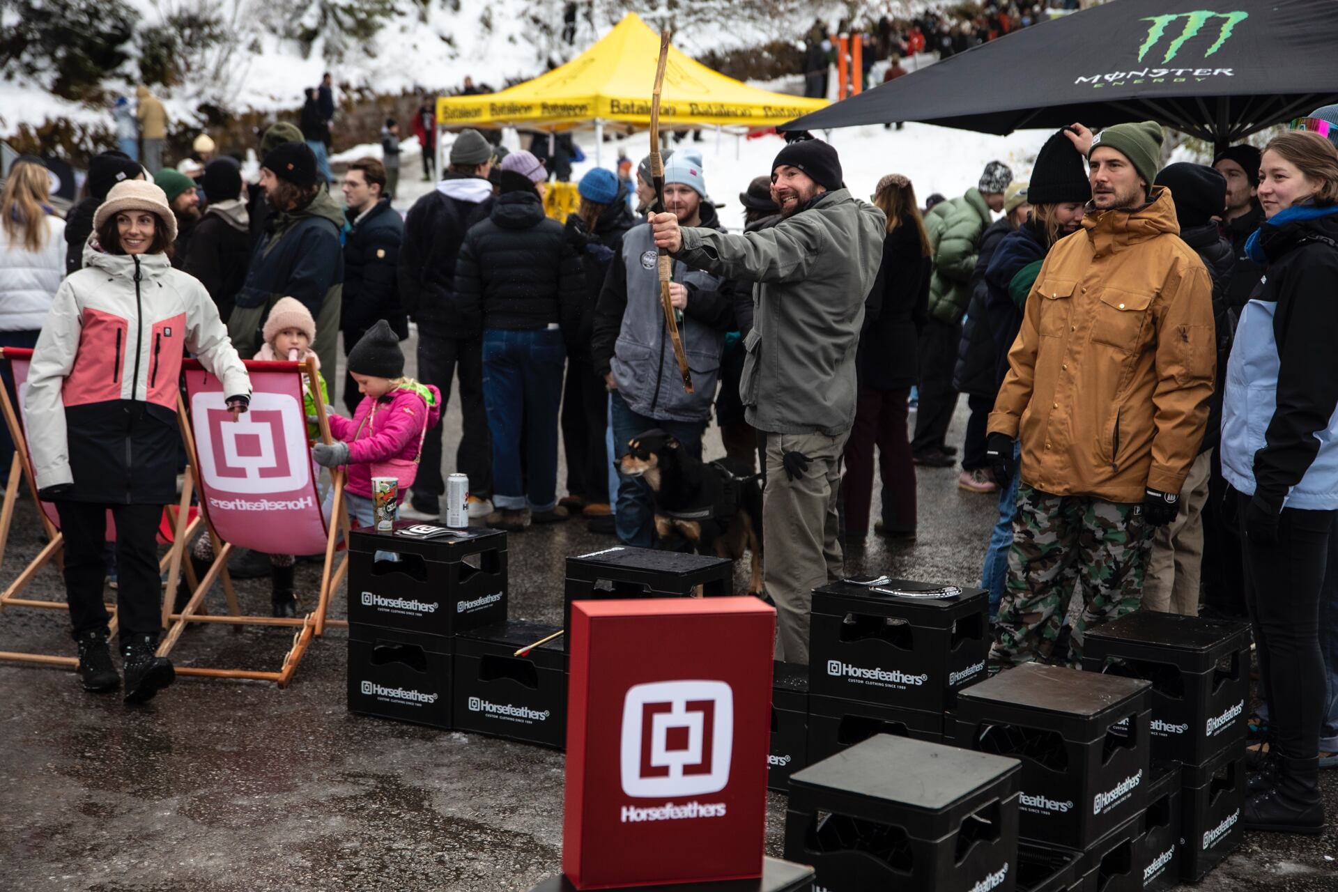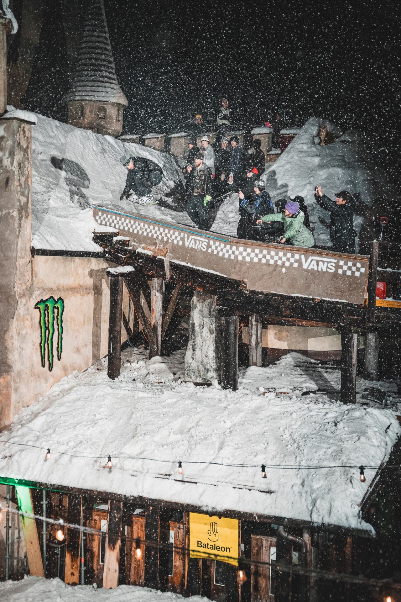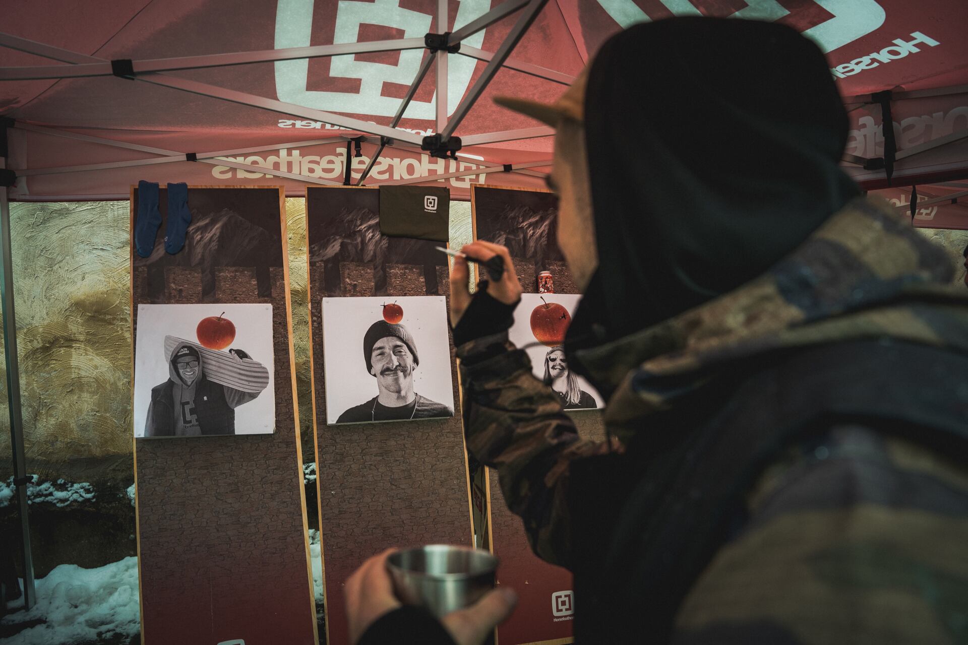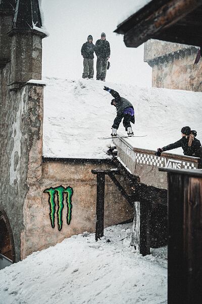 Akci zahájil velkolepý příchod Ethana a bratrů Helgasonových v dobových pláštích a na koních. Po úvodním přivítání a poděkování z Ethanovy strany se rozpoutalo to, pro co si diváci přišli. Nevíme jak vy, ale my jsme byli svědky snowboardingu na hradních zdech a střechách poprvé a musíme přiznat, že to bylo víc než epické! Atmosféru podtrhovalo nepřestávající sněžení, žízeň průběžně zažehnávalo pivko z našeho stánku a hecovačky všech riderů se stupňovaly. Full send dne patřil Ethanovi, který hradbu Seefeldského hradu dropl z vrchu až dolů bez mezilandingu na střeše.