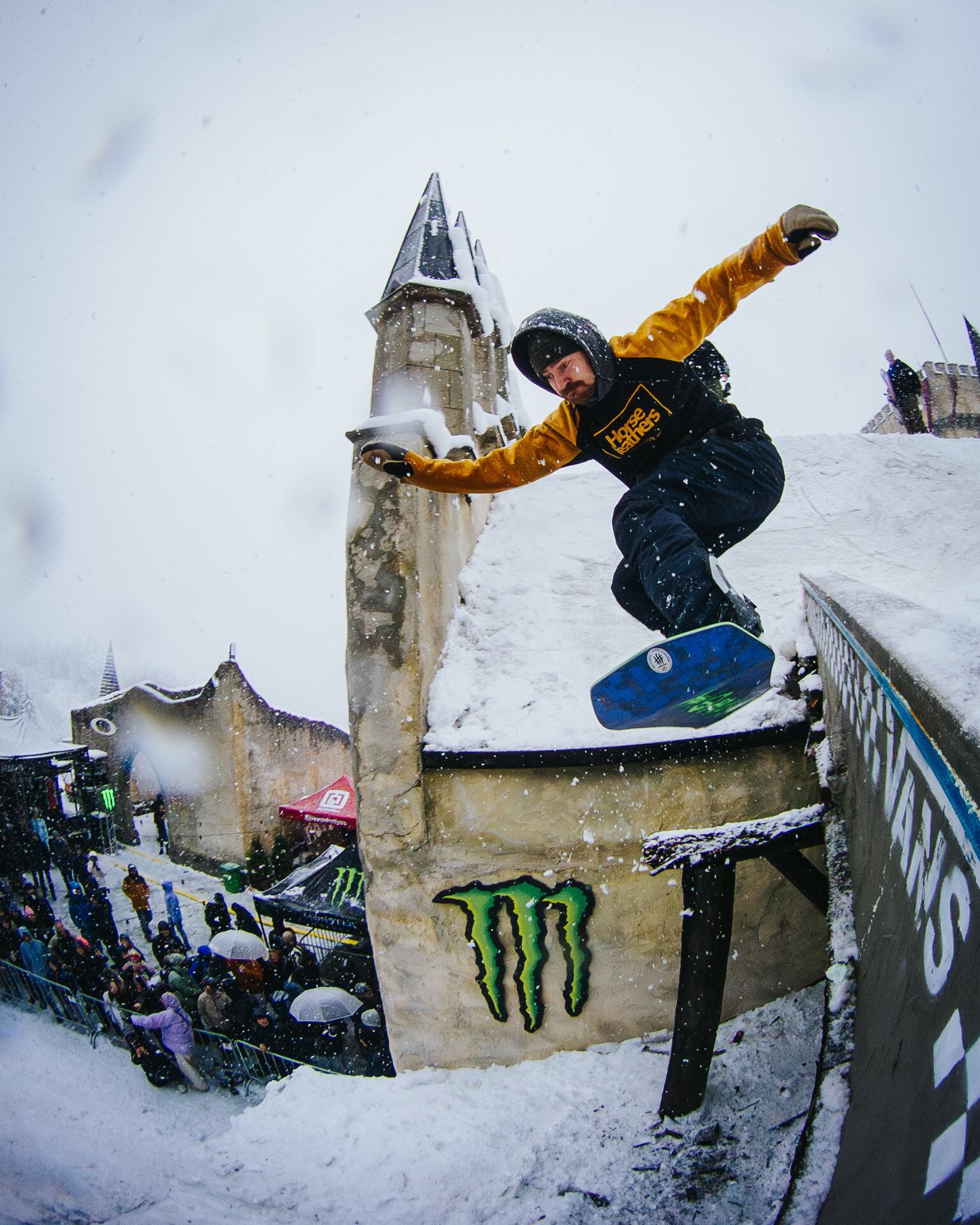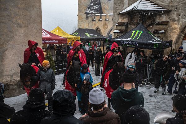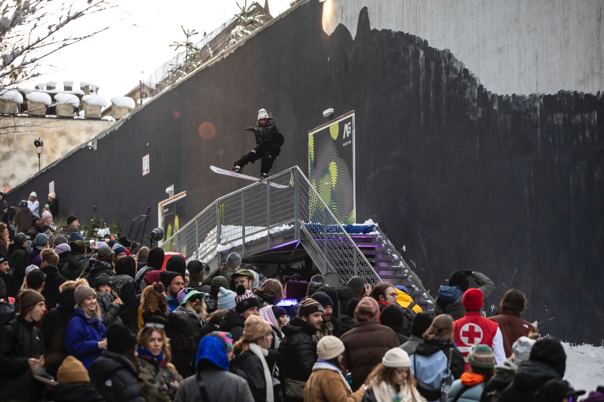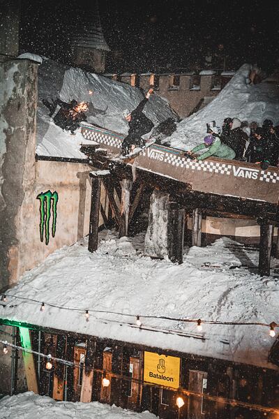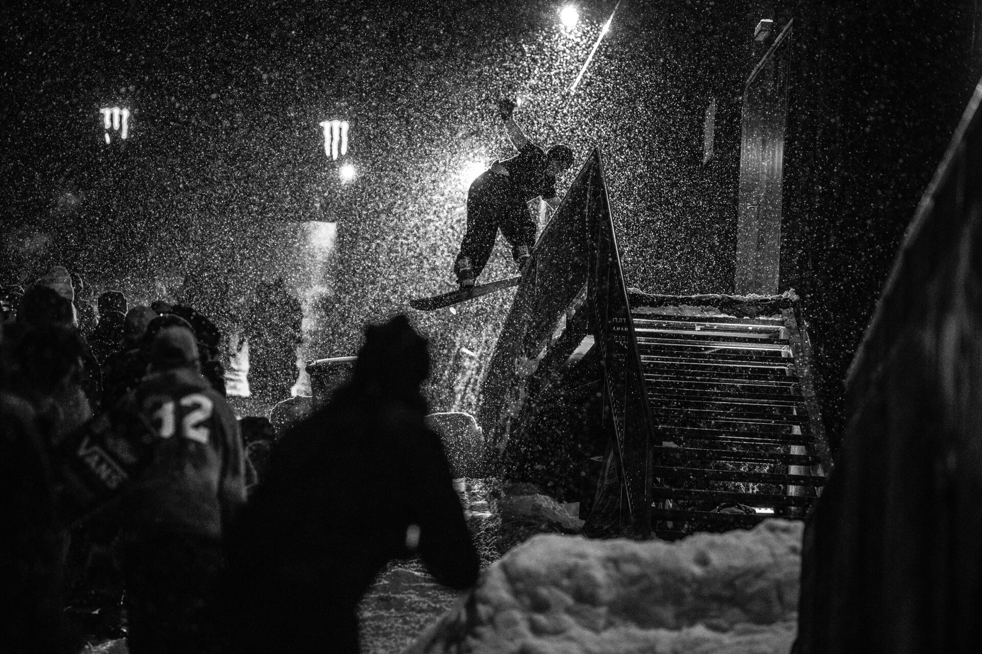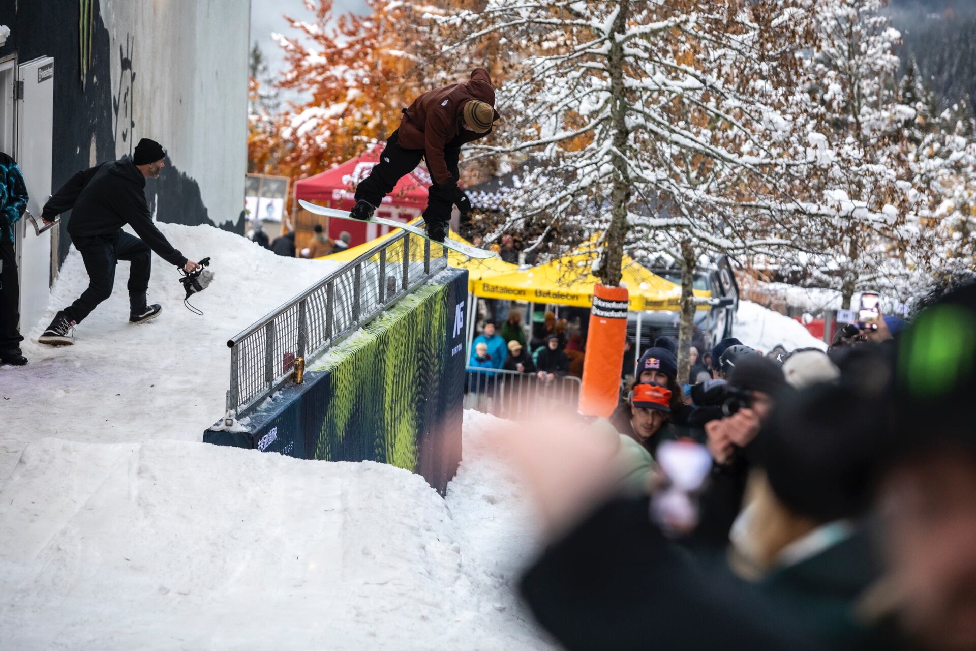 Akci zahájil velkolepý příchod Ethana a bratrů Helgasonových v dobových pláštích a na koních. Po úvodním přivítání a poděkování z Ethanovy strany se rozpoutalo to, pro co si diváci přišli. Nevíme jak vy, ale my jsme byli svědky snowboardingu na hradních zdech a střechách poprvé a musíme přiznat, že to bylo víc než epické! Atmosféru podtrhovalo nepřestávající sněžení, žízeň průběžně zažehnávalo pivko z našeho stánku a hecovačky všech riderů se stupňovaly. Full send dne patřil Ethanovi, který hradbu Seefeldského hradu dropl z vrchu až dolů bez mezilandingu na střeše.