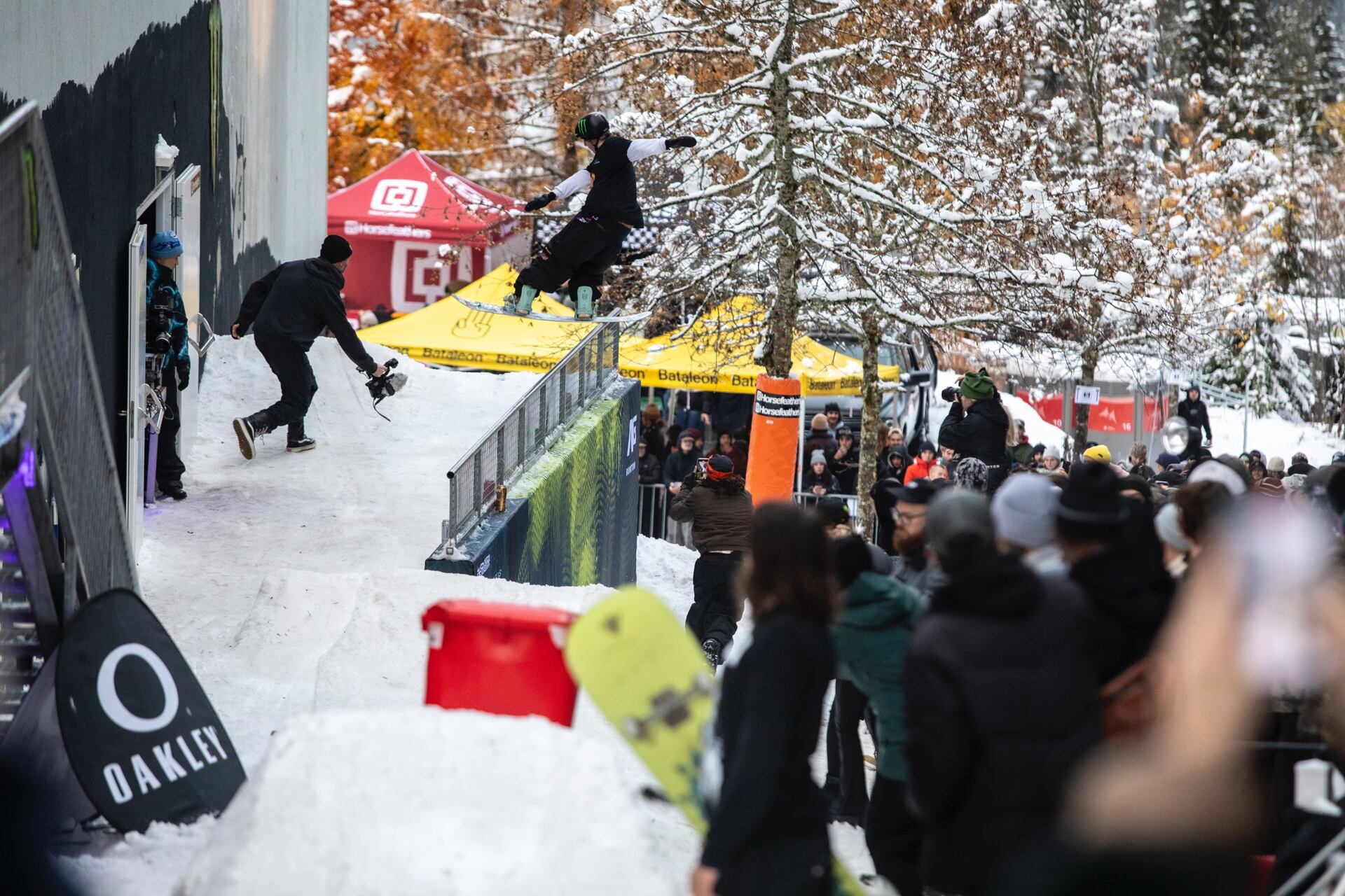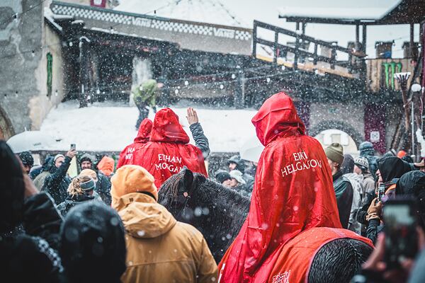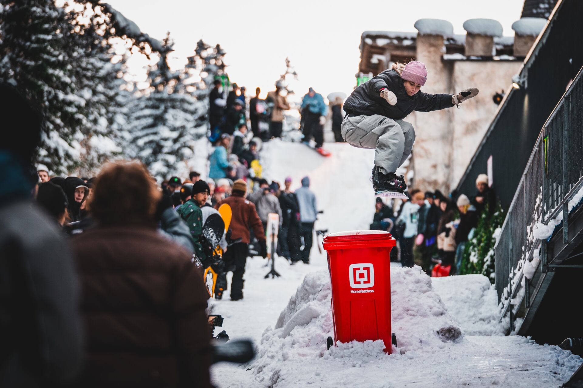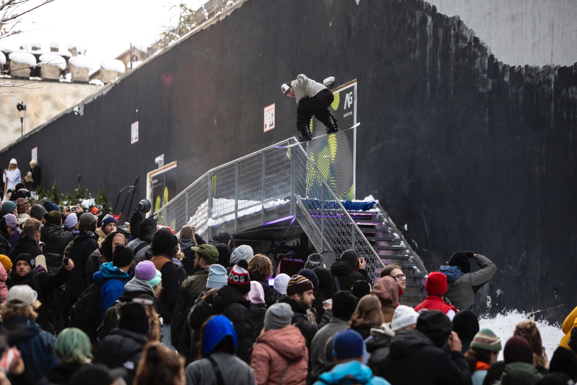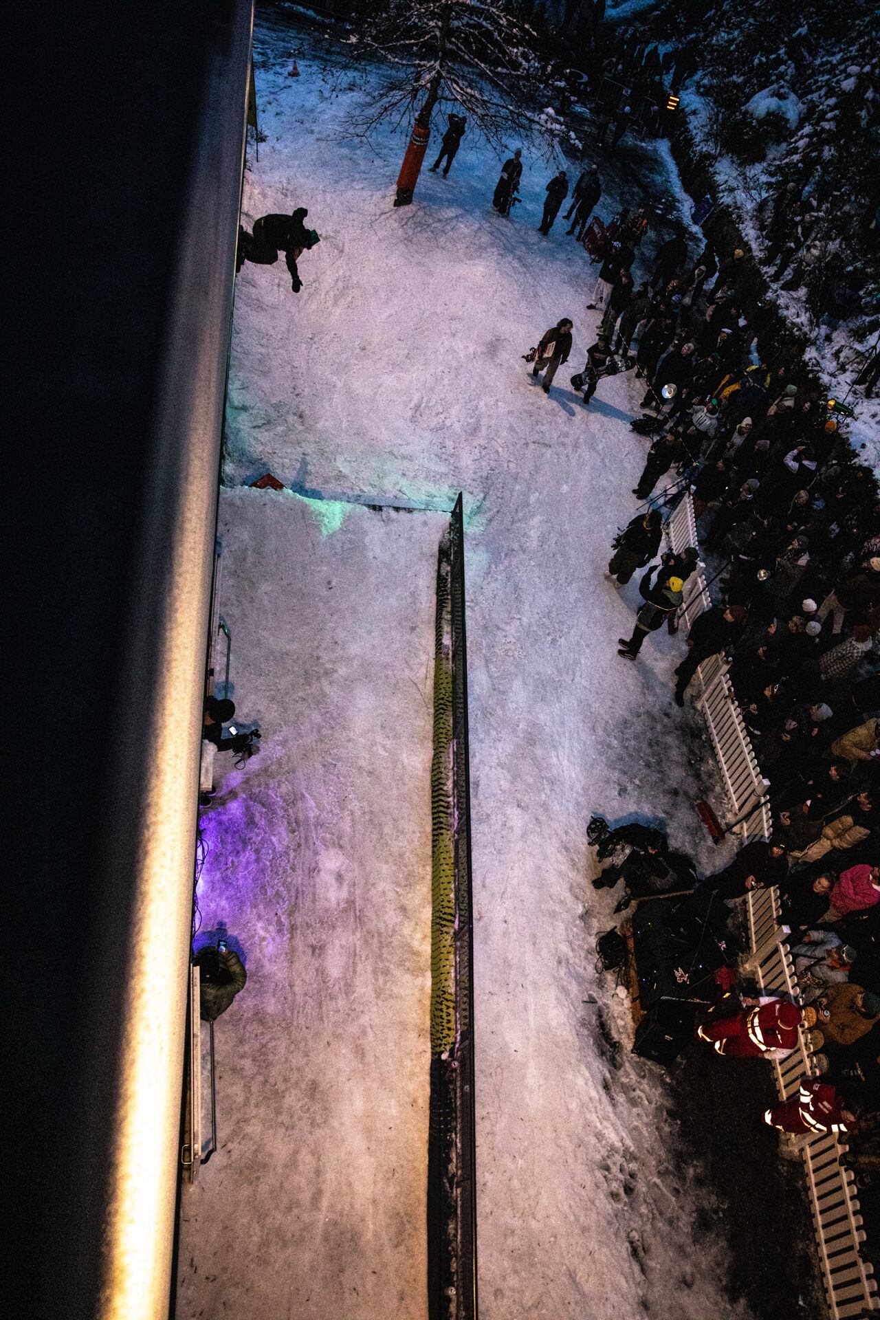 Akci zahájil velkolepý příchod Ethana a bratrů Helgasonových v dobových pláštích a na koních. Po úvodním přivítání a poděkování z Ethanovy strany se rozpoutalo to, pro co si diváci přišli. Nevíme jak vy, ale my jsme byli svědky snowboardingu na hradních zdech a střechách poprvé a musíme přiznat, že to bylo víc než epické! Atmosféru podtrhovalo nepřestávající sněžení, žízeň průběžně zažehnávalo pivko z našeho stánku a hecovačky všech riderů se stupňovaly. Full send dne patřil Ethanovi, který hradbu Seefeldského hradu dropl z vrchu až dolů bez mezilandingu na střeše.