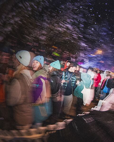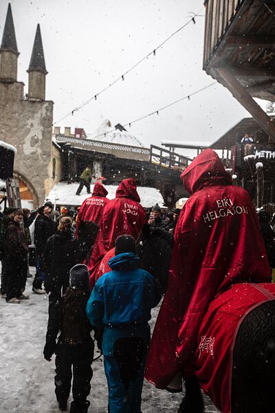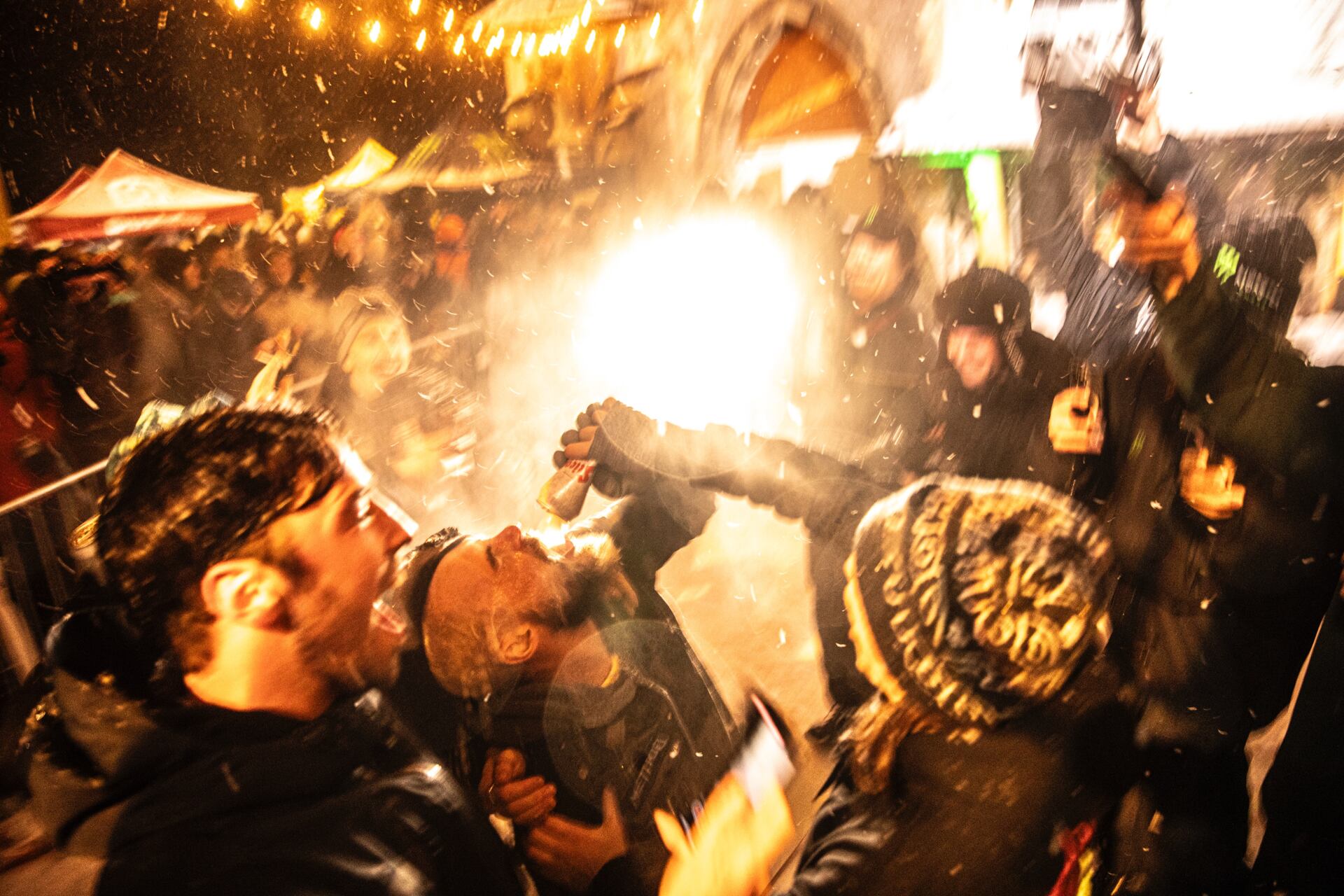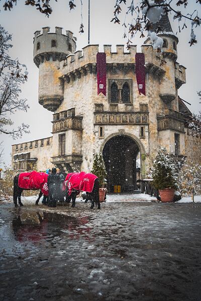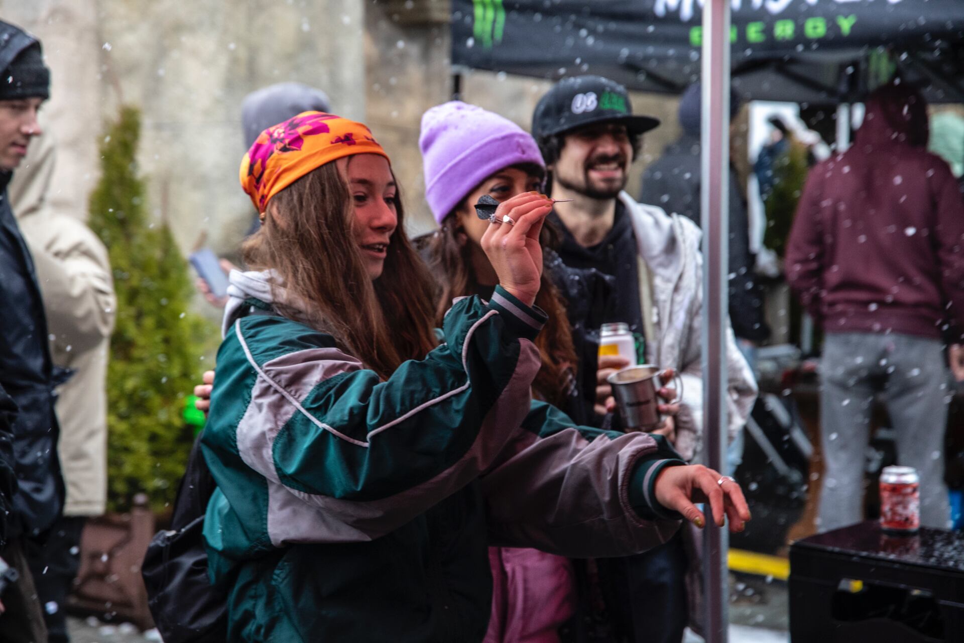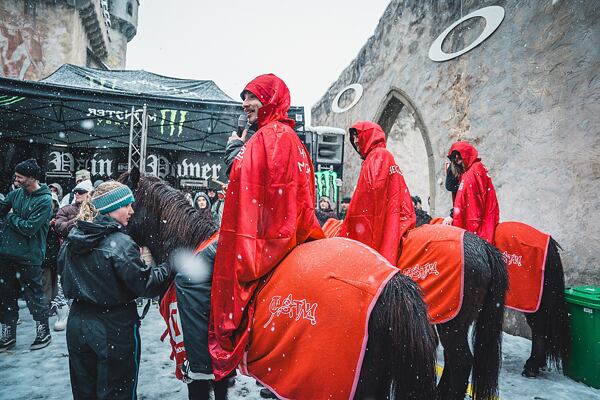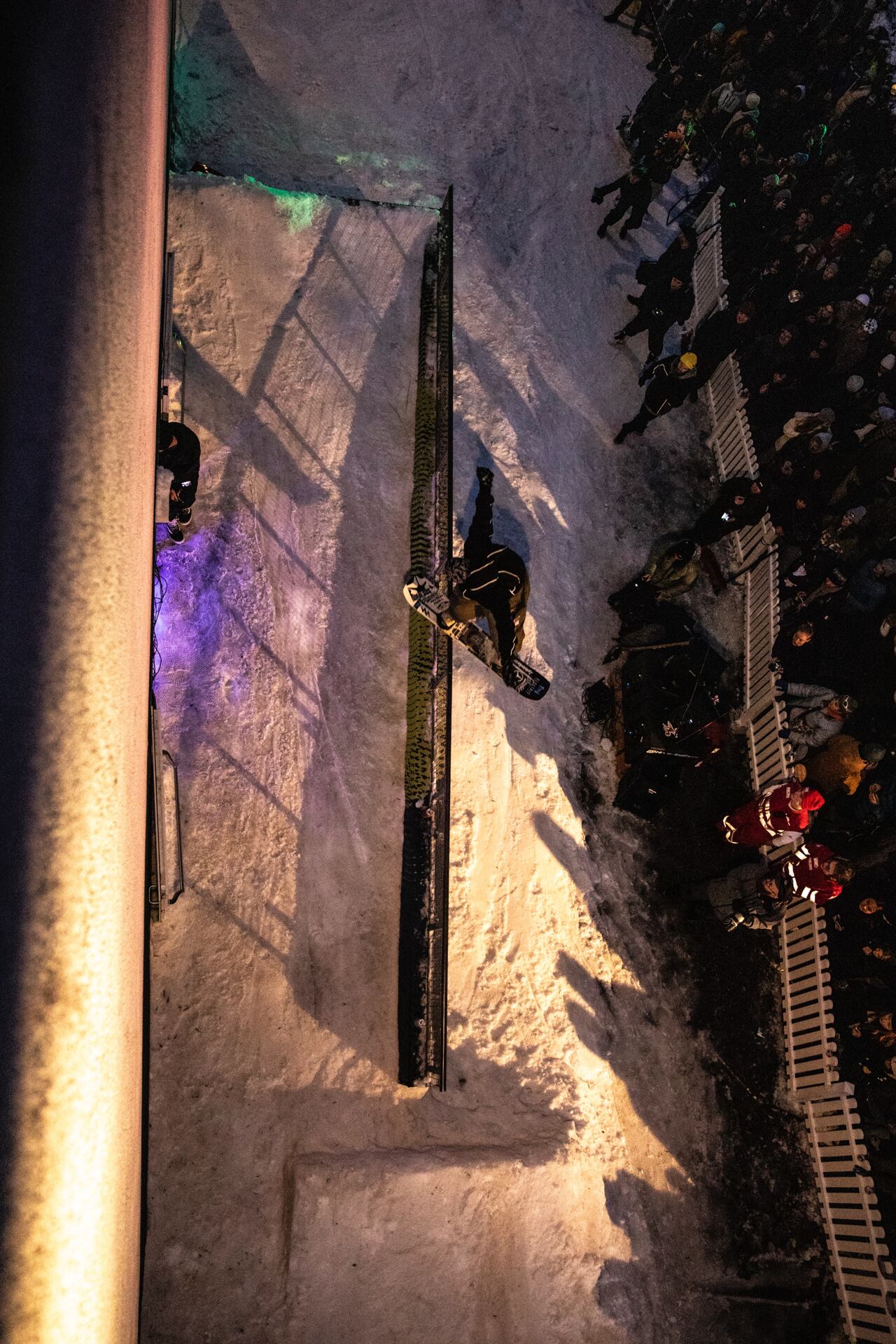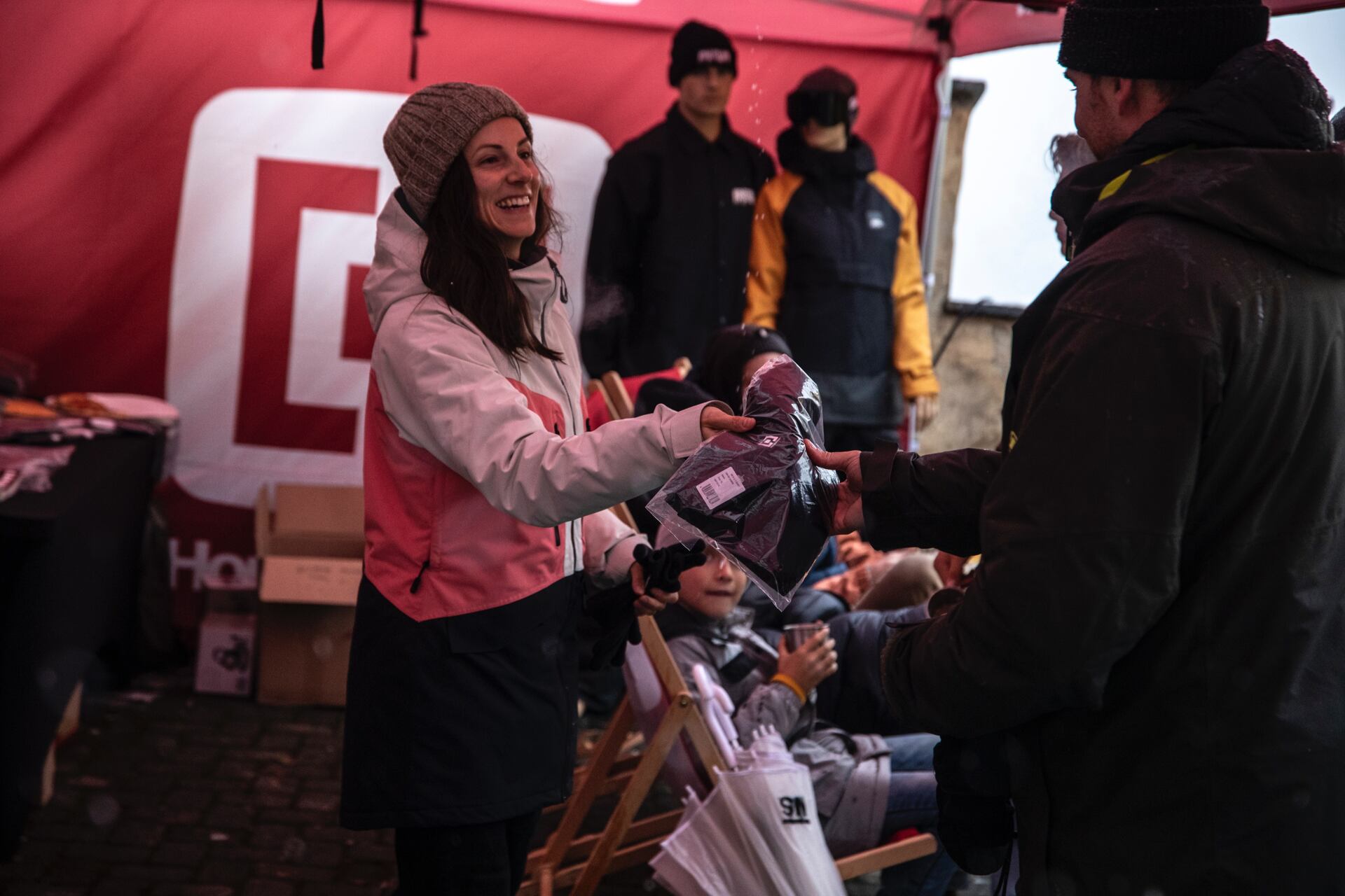 Akci zahájil velkolepý příchod Ethana a bratrů Helgasonových v dobových pláštích a na koních. Po úvodním přivítání a poděkování z Ethanovy strany se rozpoutalo to, pro co si diváci přišli. Nevíme jak vy, ale my jsme byli svědky snowboardingu na hradních zdech a střechách poprvé a musíme přiznat, že to bylo víc než epické! Atmosféru podtrhovalo nepřestávající sněžení, žízeň průběžně zažehnávalo pivko z našeho stánku a hecovačky všech riderů se stupňovaly. Full send dne patřil Ethanovi, který hradbu Seefeldského hradu dropl z vrchu až dolů bez mezilandingu na střeše.