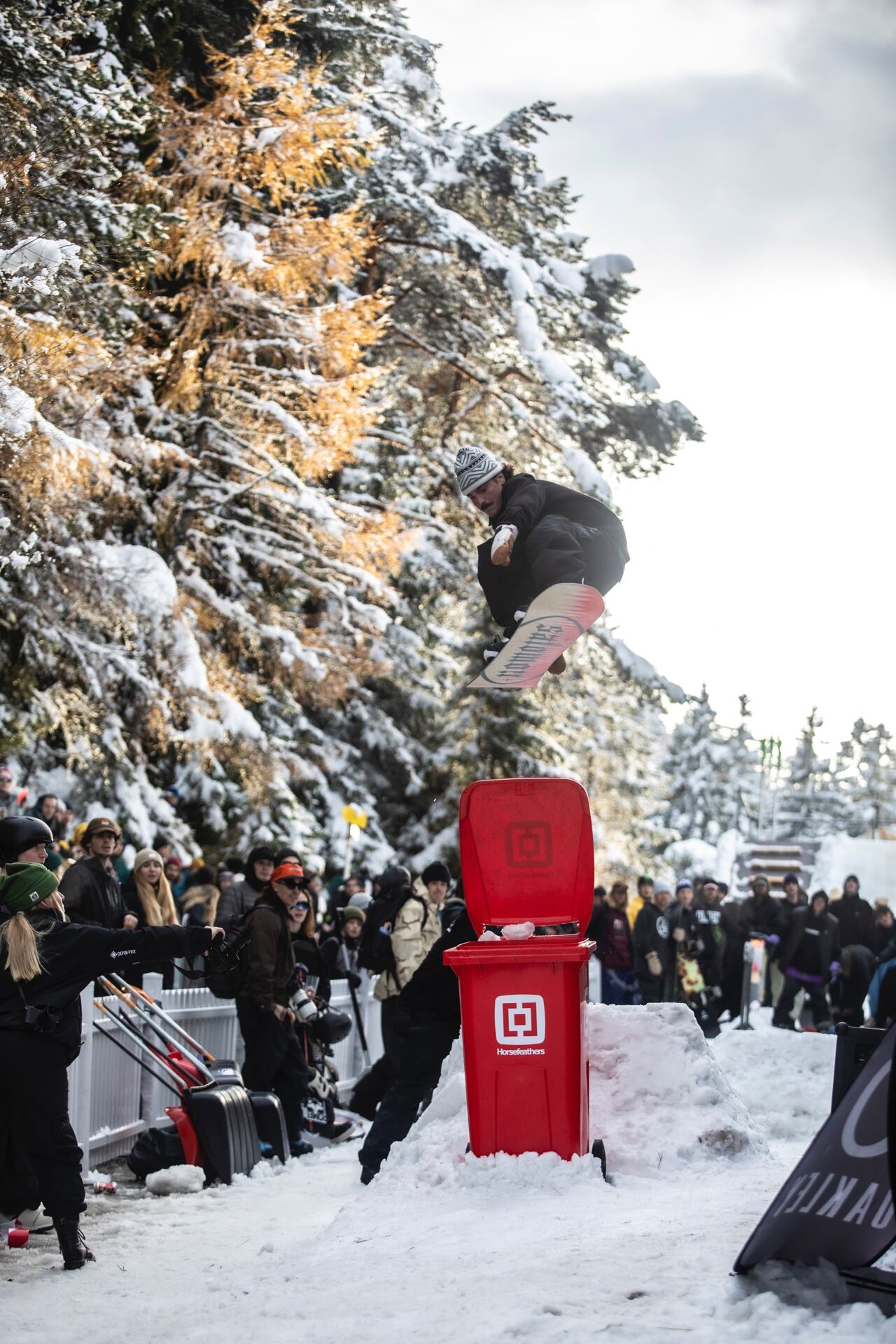 Rideři měli k dispozici streetový setup, který sestával ze zábradlí, schodů a divácky přitažlivého wallridu. To byl Fabiho šálek kávy, takže to tam neúnavně točil kolem dokola. No a co by to bylo za snowboardovou akci, kdyby se tam něco nebongovalo?! Tentokrát to schytala naše červená popelnice, která od riderů definitivně dostávala "co proto". Kreativní sérky se jezdily až do večera, kdy seto celé pomalu a plynule začalo překlánět do finální afterparty.