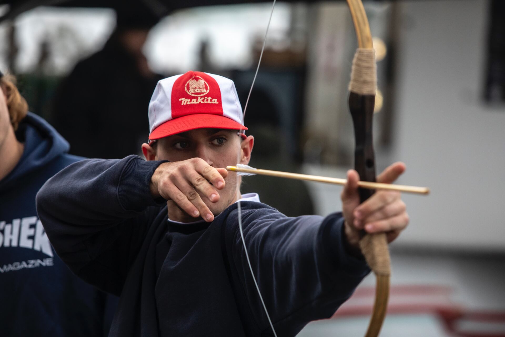 Na našem stánku to mezitím žilo lukostřelbou. Zúčastnění si mohli zastřílet na terč v podobě Halldórovy, Fabiho a Ethanovy tváře, zatímco tomu oni přihlíželi s pivkem v ruce. Pokud ses trefil do jablka nad jejich hlavou, mohl jsi vyhrát nějaké oblečení nebo pivko. Mnoho šípů letělo mimo a skončilo v lese, a tak nebylo jisté, zda dojdou spíše šípy nebo pivo.