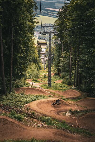 Jsme stále se rozvíjející trailpark s fakt pestrou nabídkou. Náš modrý flow trail patří mezi nejdelší v Česku – ideální pro děti zhruba od 6 let, ale skvěle si ho užijí i začátečníci a zkušení jezdci. Trail využívá i naše bike škola, která má zázemí přímo v areálu. V cíli máme mini bike park s vlnkami a klopenkami, kde probíhají i zmíněné závody. Nechybí pumptrack, skákací lajna pro pokročilejší a samozřejmě červený Blinduro trail, který nám zůstal po stejnojmenných závodech. No a pro ty, kdo hledají výzvu, máme dvě černé tratě – jedna vede pod lanovkou a druhá skrz kamenitý les, který má fakt jedinečnou atmosféru.