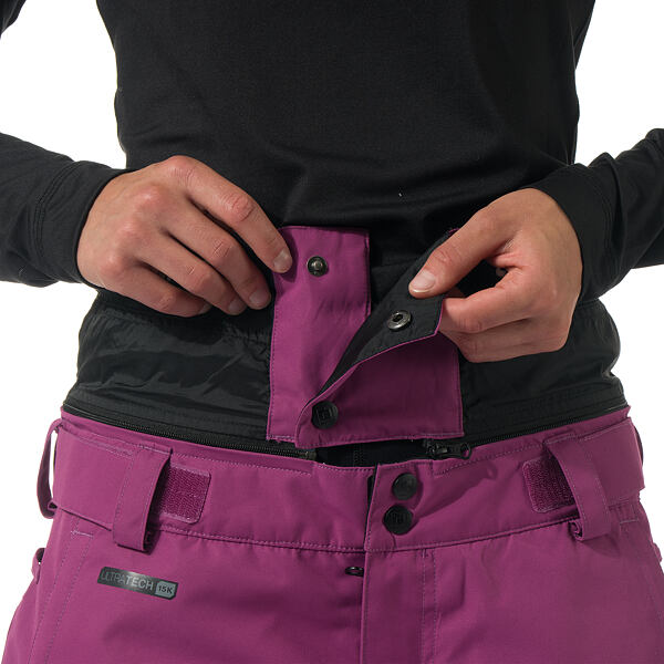 Odepínatelný protisněžný pás kalhot zabraňuje vniknutí sněhu při pádu nebo jízdě v prašanu.