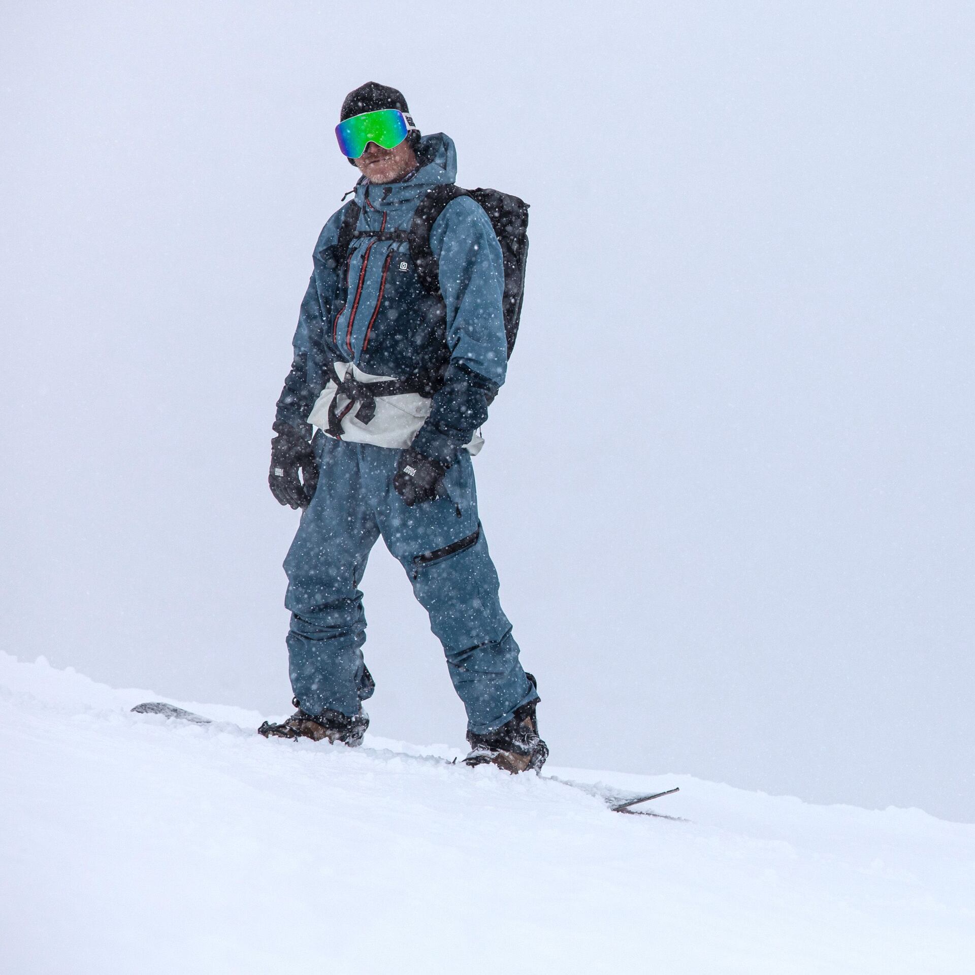 Odepínatelný protisněžný pás kalhot zabraňuje vniknutí sněhu při pádu nebo jízdě v prašanu.