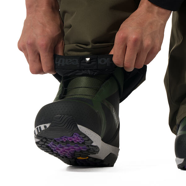 Návlek s háčkem umožňuje spojení s botou na snowboard a tím brání proniknutí sněhu dovnitř.